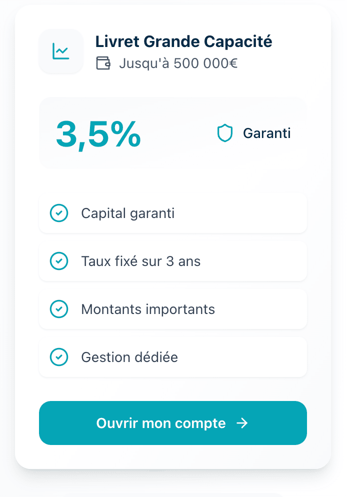 Idéal pour les épargnants disposant d’un capital important, ce livret combine sérénité et un taux attractif pour des dépôts plus conséquents.