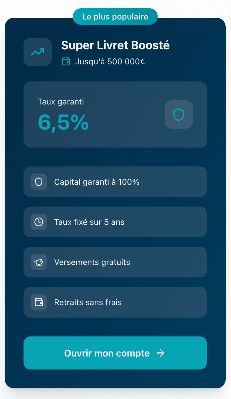 Accédez à des rendements garantis à 6,5%, sans frais, tout en profitant de la flexibilité d’un produit adapté à tous les profils.